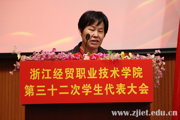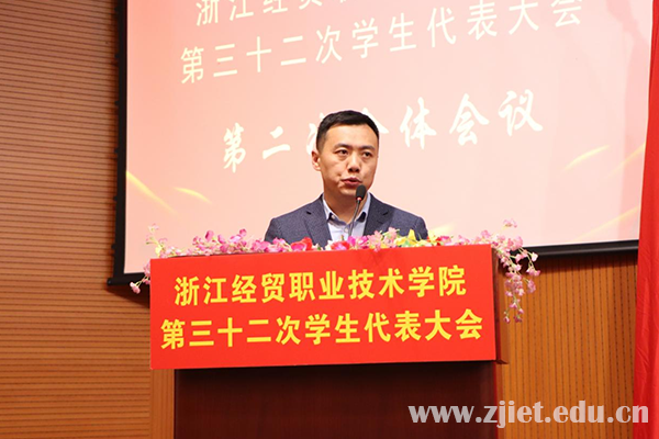 校学生会执行主席应柔怡作题为《砥砺奋进新征程,用心谱写新华章团结带领经贸青年为学校“双高建设”贡献青春力量》的工作报告,回顾总结第三十一次学生代表大会以来的各项工作与主要成绩,并对下一阶段的学生会工作赋予新的希望。