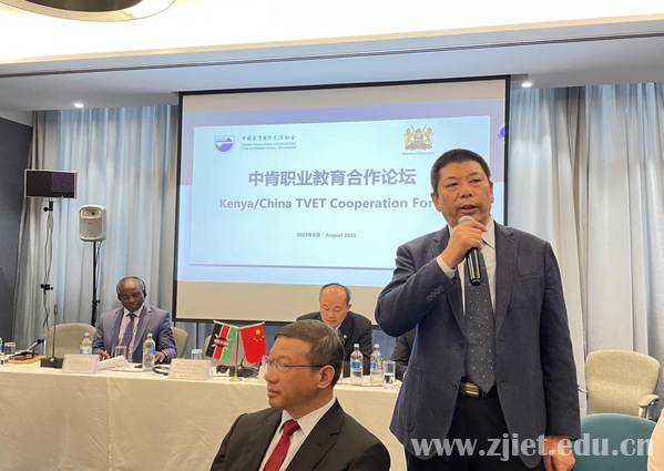 在肯尼亚,代表团一行参加了中非职业教育资源对接会及非洲职业技能挑战赛颁奖典礼。会上,陈德泉介绍了学校基本情况,并与非洲各参会代表进行项目交流洽谈,非方代表希望未来与我校在留学生联合培养、技术技能人才培训及师资培养等方面进行进一步的合作。